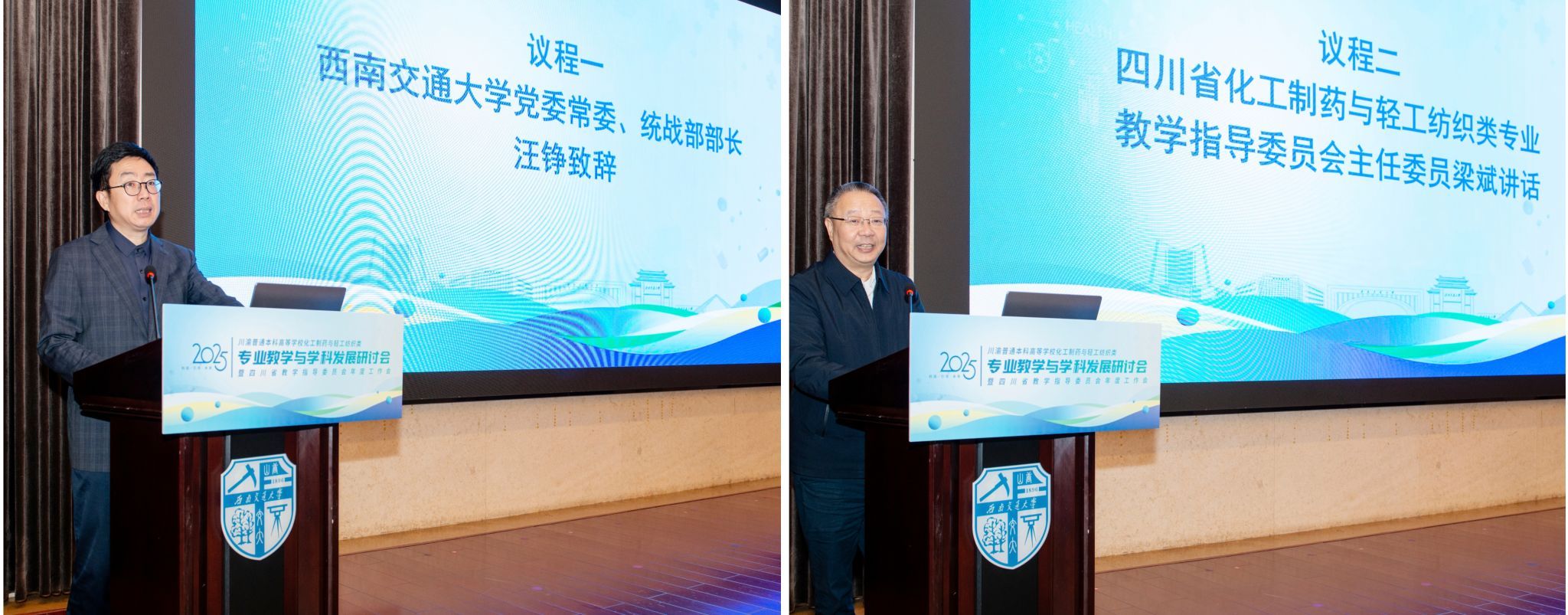 为深入贯彻落实全国教育大会及2025年全国教育工作会议精神,全面提升川渝高校化工制药与轻工纺织类专业人才培养质量,11月7日至9日,由四川省普通本科高等学校化工制药与轻工纺织类专业教学指导委员会主办、西南交通大学承办的2025年川渝普通本科高等学校化工制药与轻工纺织类专业教学与学科发展研讨会在西南交通大学峨眉校区召开。西南交通大学党委常委、统战部部长汪铮,四川省化工制药与轻工纺织类本科专业教学指导委员会主任委员、四川大学教授梁斌出席开幕式并致辞。开幕式由西南交通大学生命科学与工程学院院长周先礼主持。