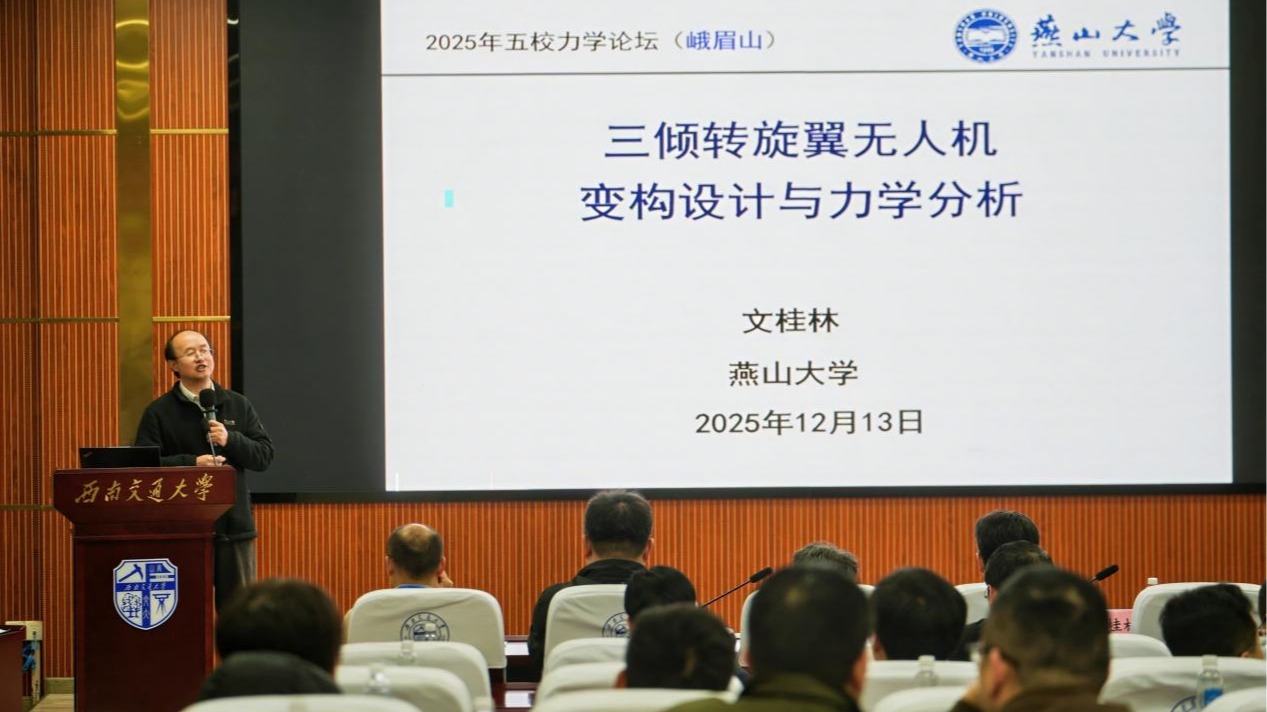 12月13日,由四川省力学学会主办,西南交通大学力学与航空航天学院承办,北京交通大学、天津大学、浙江大学、华中科技大学联合协办的2025年五校力学论坛,在西南交通大学峨眉校区802报告厅开幕。开幕式由西南交通大学力学与航空航天学院院长李翔宇主持。