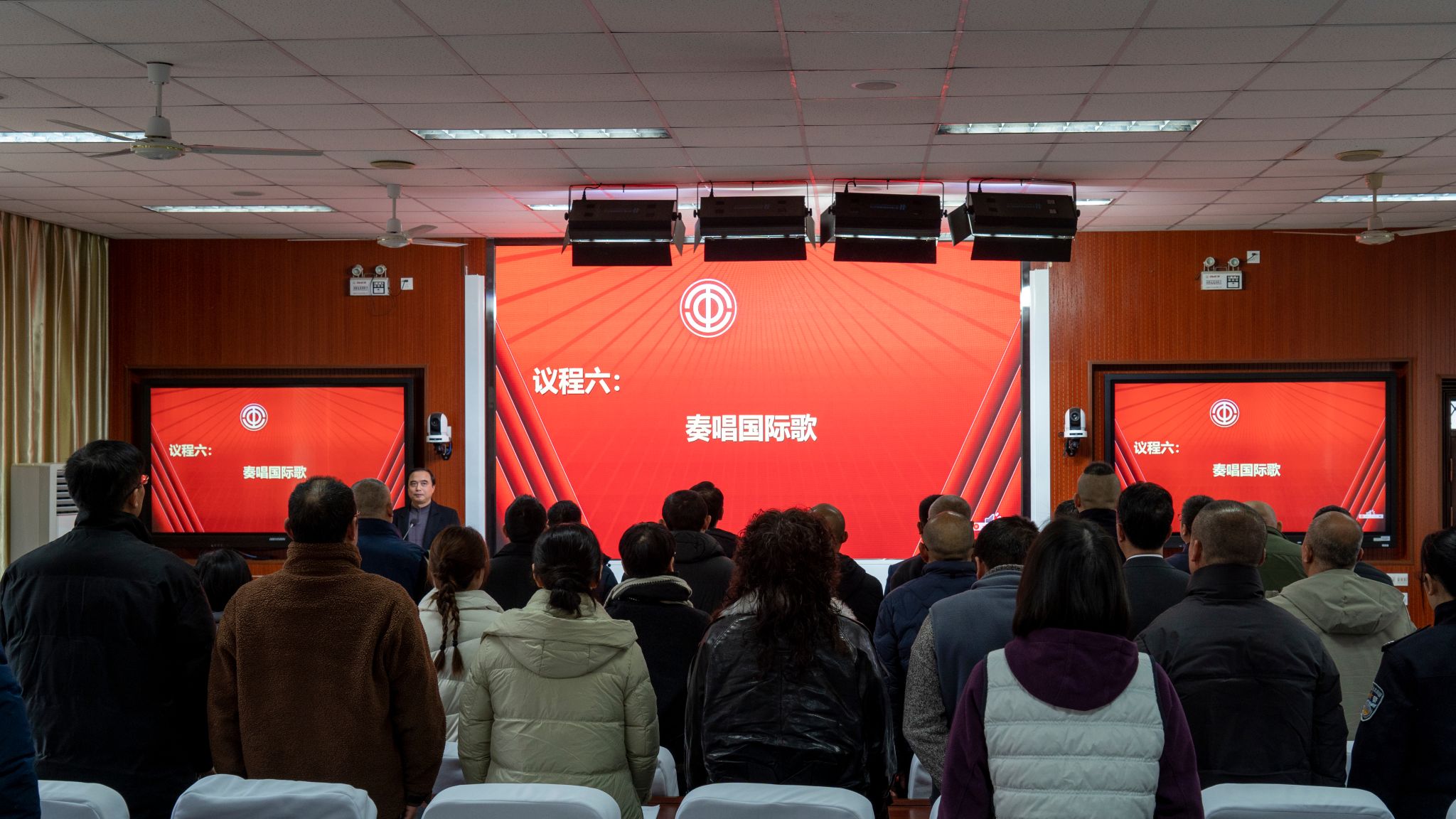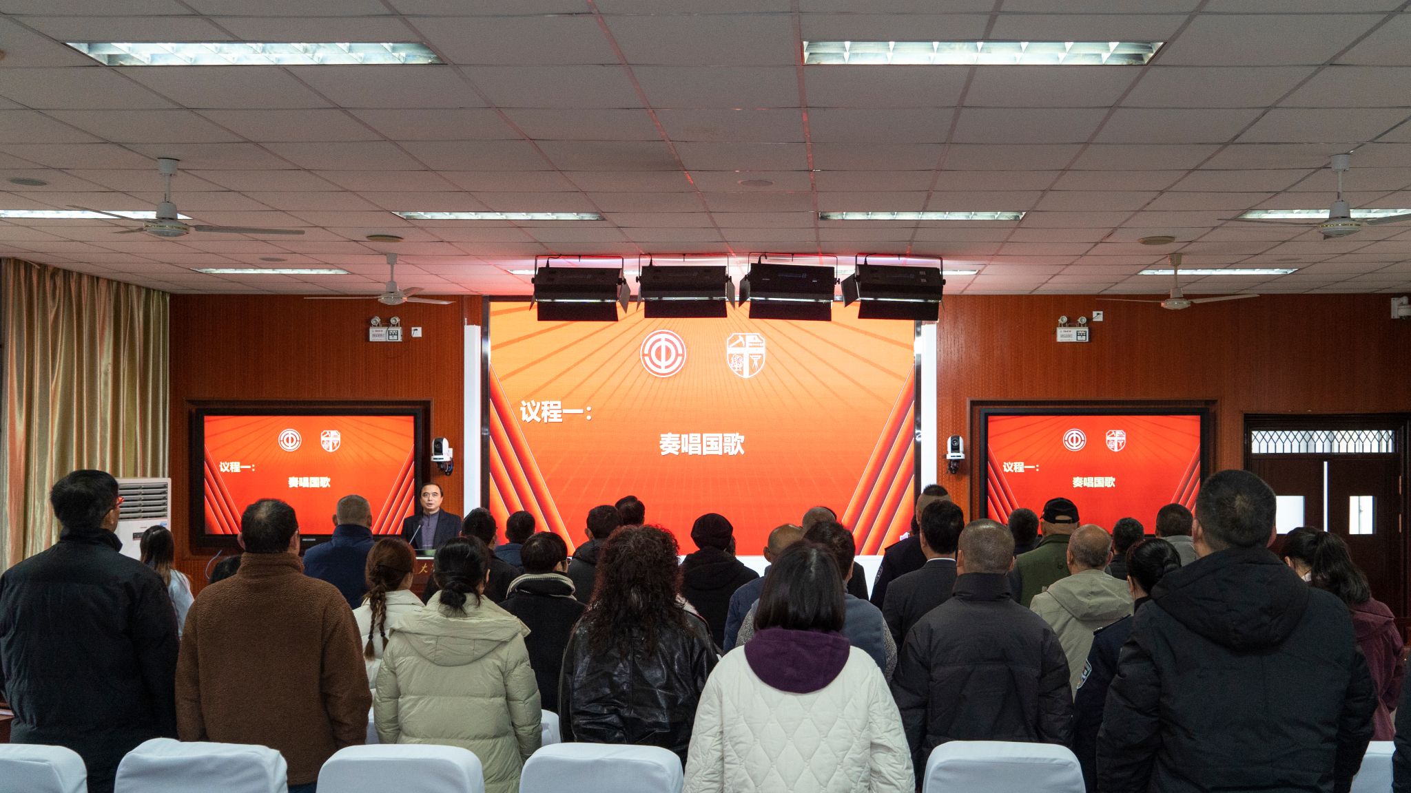 大会在庄严的国歌声中拉开帷幕。