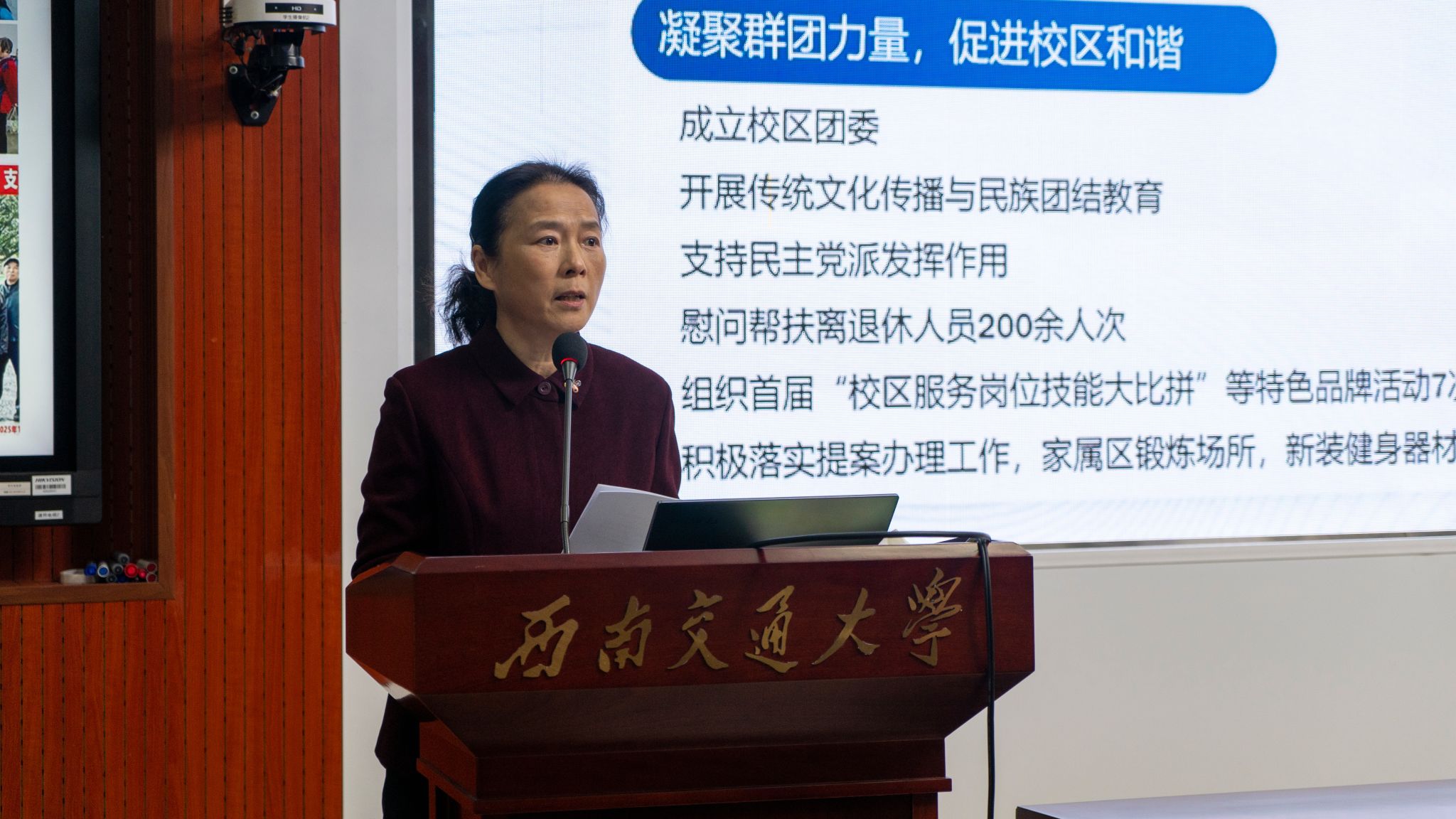 会上,峨眉校区管委会常务副主任刘朝晖作校区2025年工作报告,从党建领航、立德树人、品牌培训、产教融合、内部治理、服务保障与校园环境等六个方面回顾总结了2025年工作成绩。