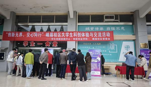 为激发广大学子创新意识,培养科研思维与实践能力,近日,由西南交通大学学生创新实践中心(创新创业学院)与峨眉校区管委会联合主办,学校创客中心与峨眉校区团委共同承办的“创新无界、交心同行”科创体验与交流活动,在峨眉校区学生一食堂前成功举行。